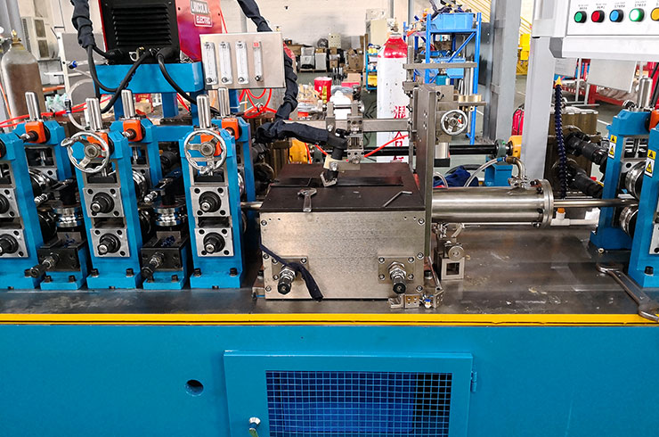 經(jīng)開卷、清洗裝置、進(jìn)料導(dǎo)向、成型、焊接、內(nèi)焊整平、外焊縫打磨、整形定徑、固熔處理、終定徑、校直、探傷、噴碼、定尺、切斷(盤卷)、接料等連續(xù)成型工藝、結(jié)構(gòu)精細(xì)、操作簡便