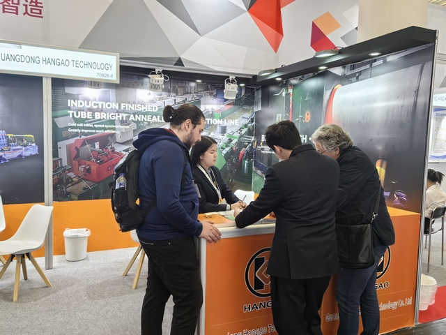 漢高科技亮相展會,與全球各地的不銹鋼制管企業(yè)進行技術交流。