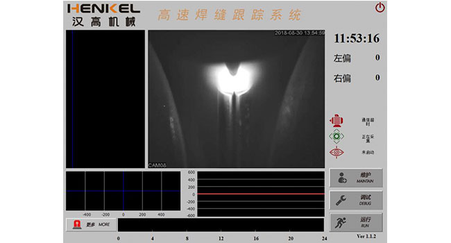 內(nèi)碾壓裝置,由液壓系統(tǒng)和碾壓小車組成。碾壓小車有上下兩輥輪和放在管子內(nèi)的芯棒程序動(dòng)作做往復(fù)運(yùn)動(dòng),整個(gè)系統(tǒng)由PLC程序控制。將焊接后不銹鋼管的內(nèi)焊縫碾平,采用業(yè)內(nèi)創(chuàng)新性的兩缸技術(shù),保證小車運(yùn)行平穩(wěn),小車換向采用動(dòng)態(tài)曲線設(shè)置,觸摸屏控制。基于雙推型焊縫整平功能,研發(fā)出高速型整平機(jī),更快速,更高效。